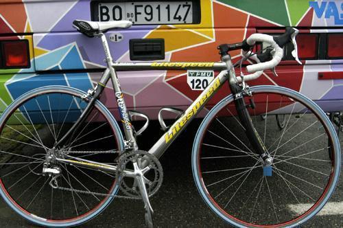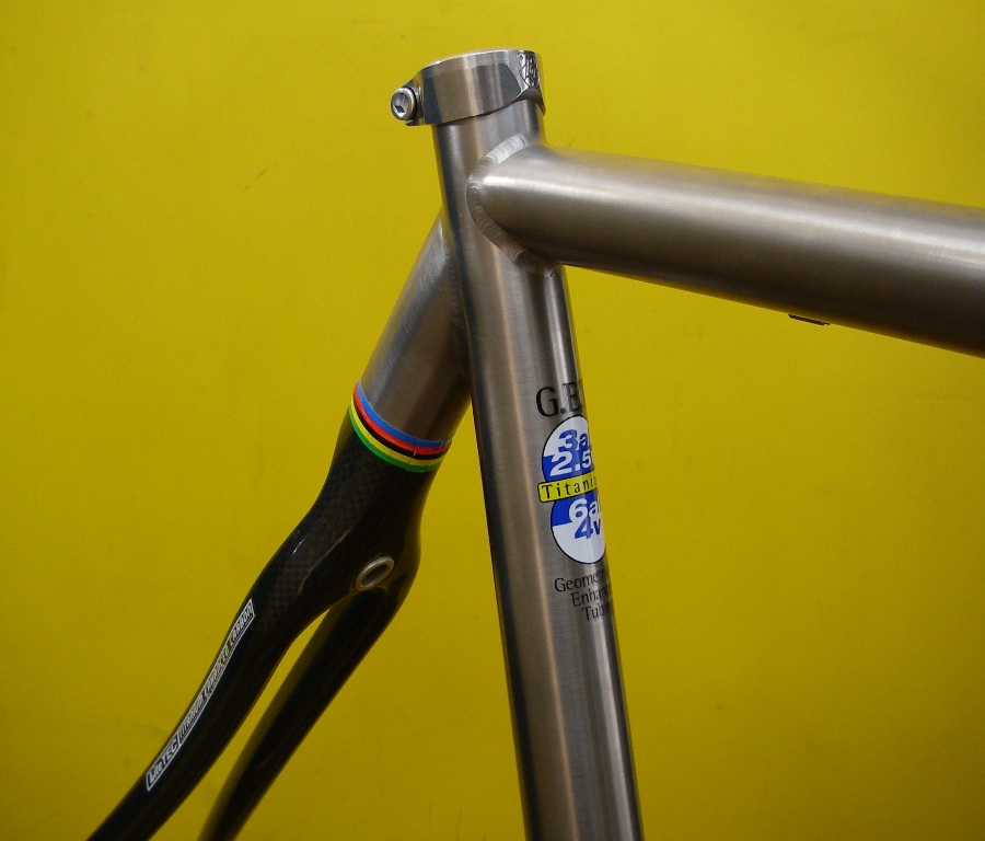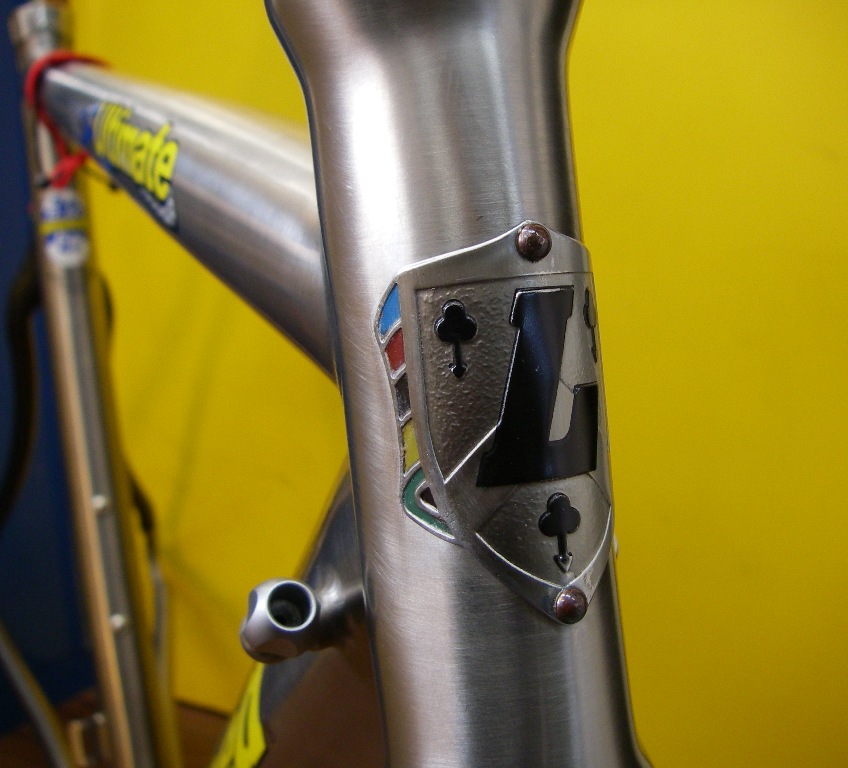 コルナゴフレームのトップチューブの自転車小僧がこっち向いて