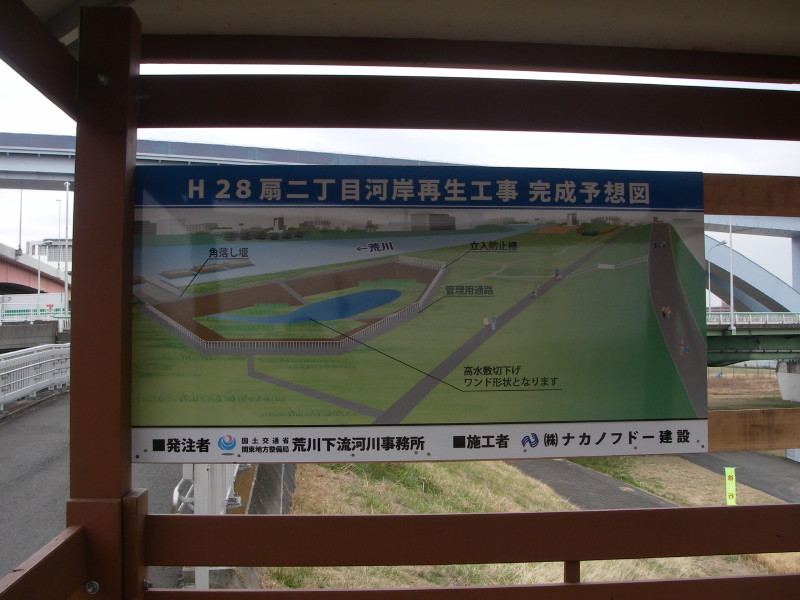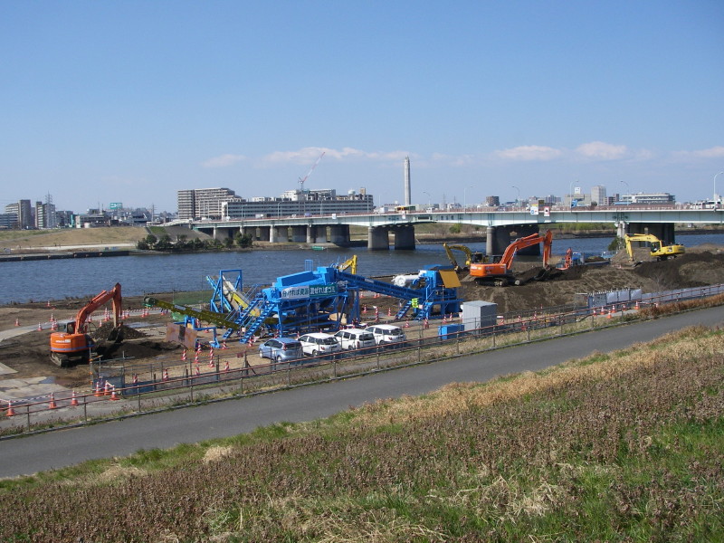 真昼間にこの作業するのもすごいですけど、店の前は鹿浜橋渡るのにこの先で