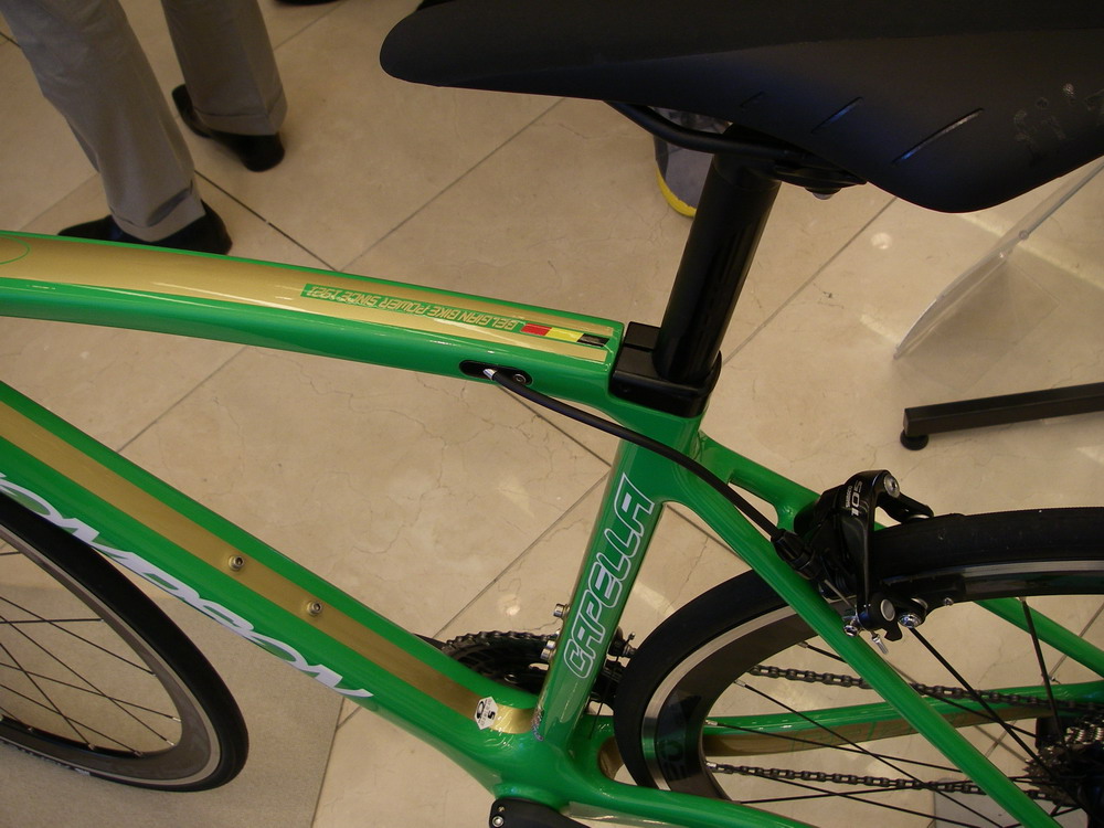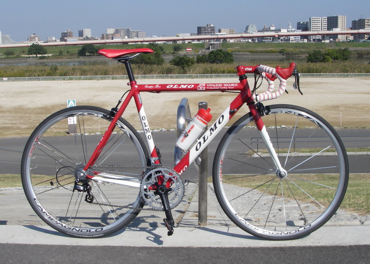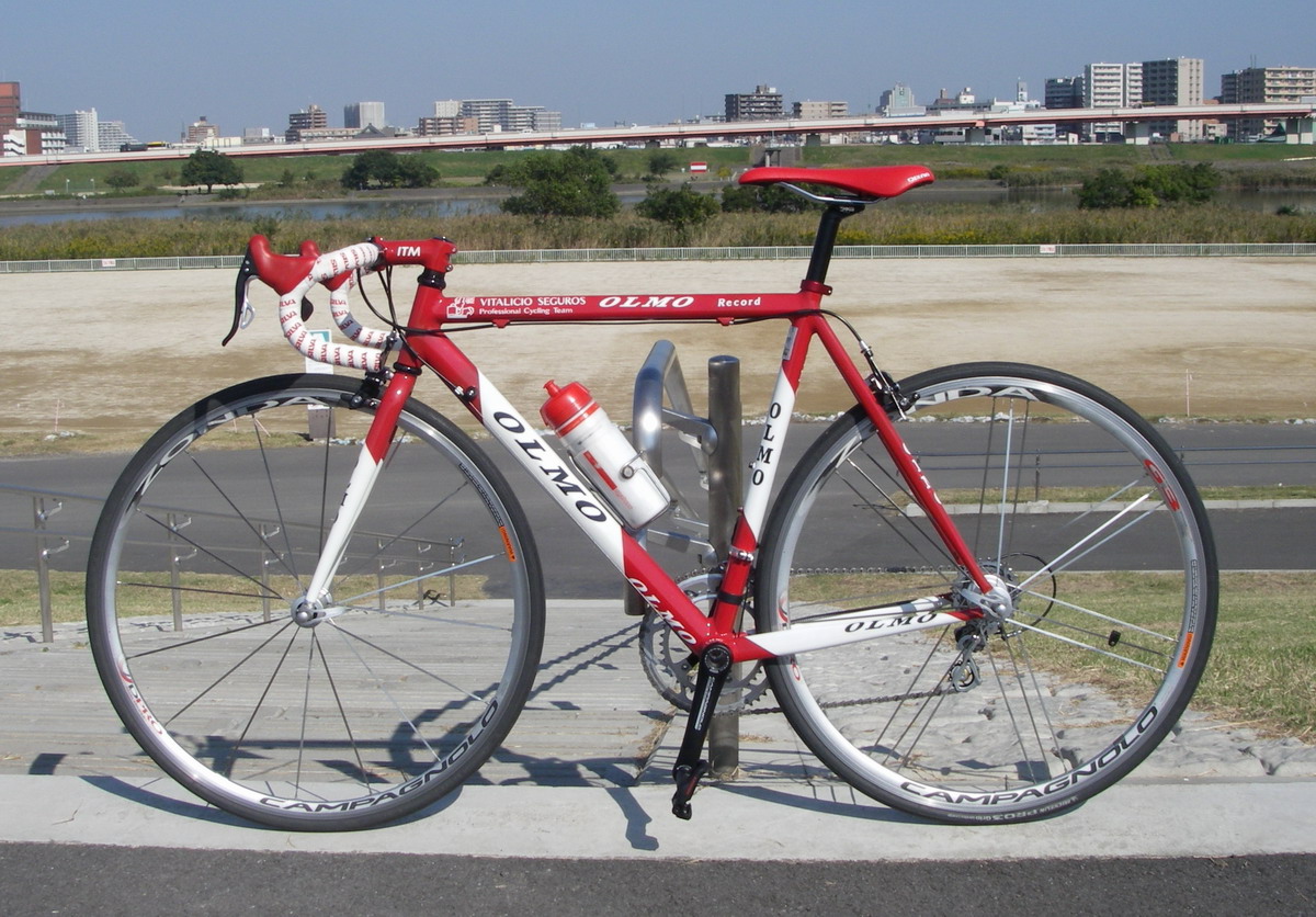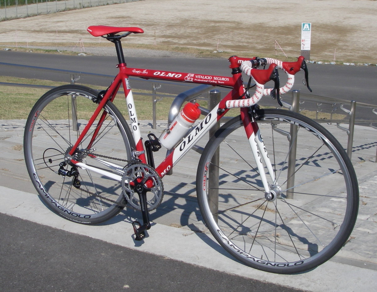 タイヤ以外の使用機材は、ホイール Campagnolo ZONDA 、フレームは OLMO の